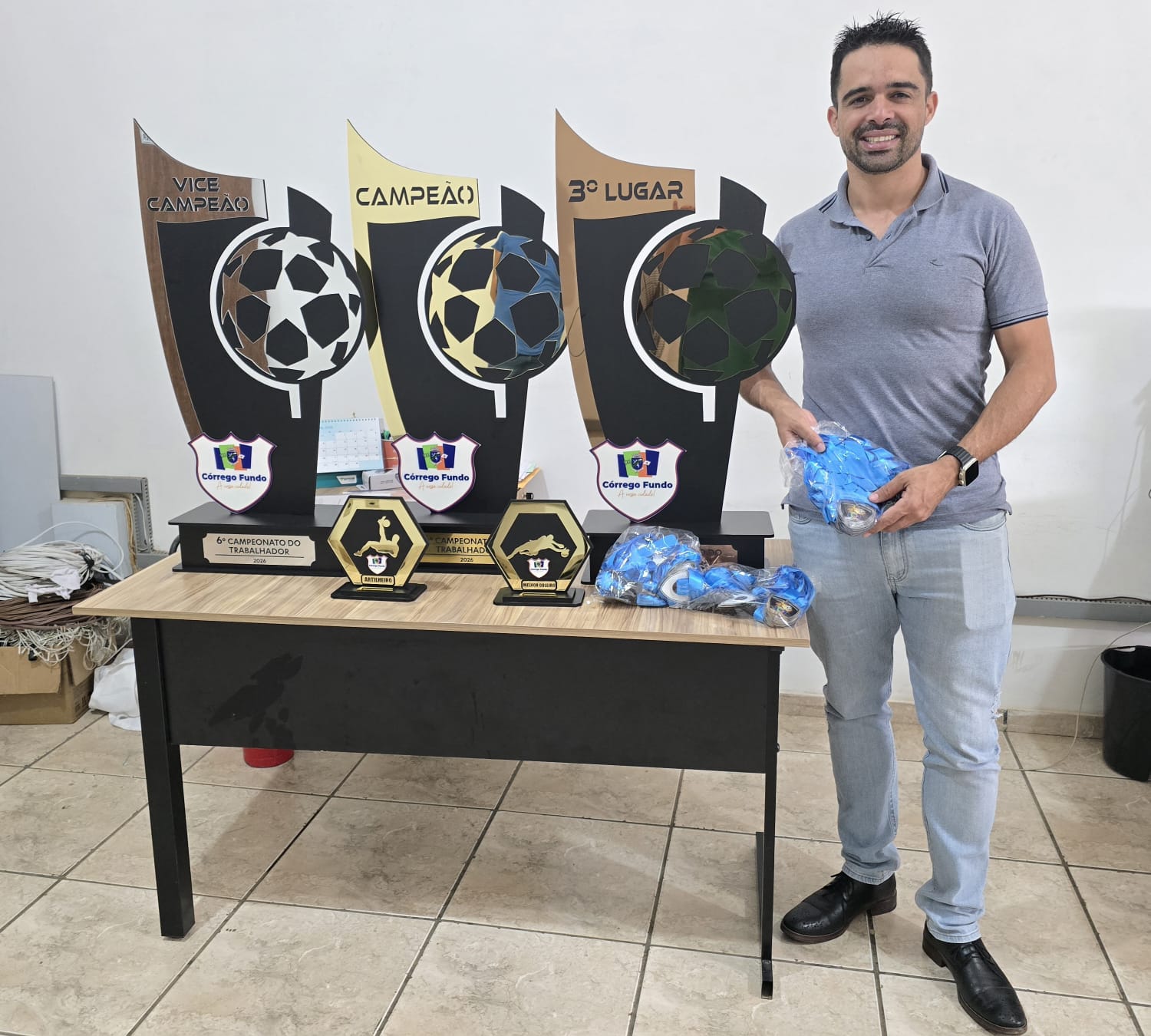 Córrego Fundo recebeu, nesta quinta-feira (23), os troféus e medalhas que serão entregues na premiação do 6º Campeonato do Trabalhador. São cinco troféus, para primeiro, segundo e terceiro colocados, melhor artilheiro e melhor goleiro, além de 75 medalhas para todos os atletas participantes. Os itens já estão organizados na Secretaria de Cultura, Esporte, Lazer e […]