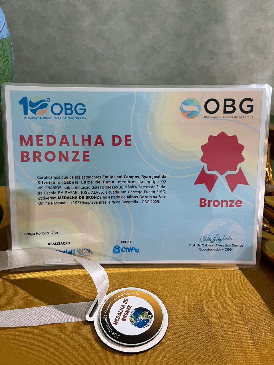 Alunos da Escola Municipal Rafael José Alves obtiveram medalha de bronze na 10ª edição da Olimpíada Brasileira de Geografia (OBG).
