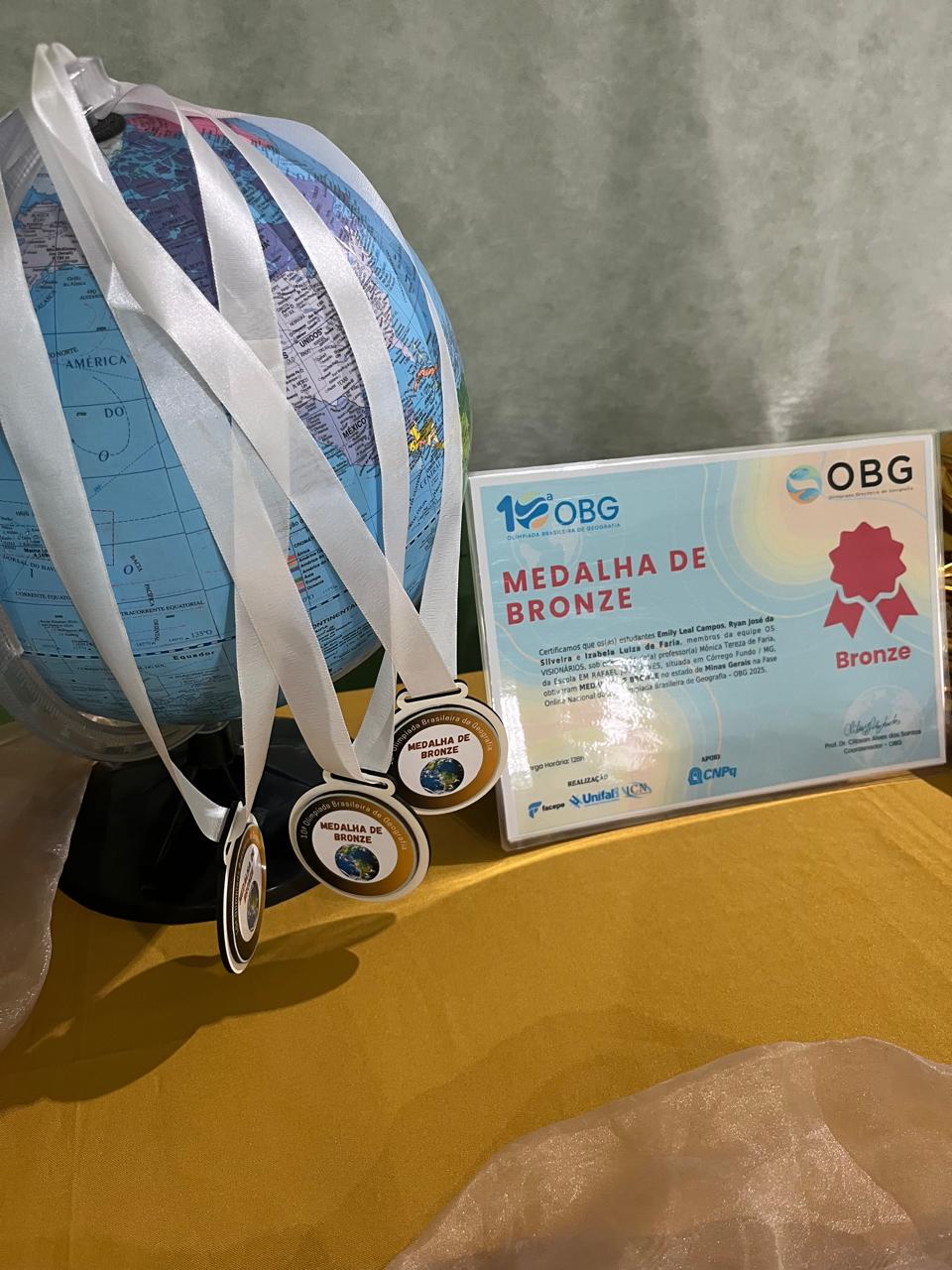 Os estudantes Emily Leal Campos, Ryan José da Silveira e Izabela Luiza de Faria foram homenageados na escola por seu desempenho na competição. A diretora Eduarda Faria Leão e a vice-diretora Aline Alves de Faria Costa prestaram a homenagem, que incluiu a professora de Geografia dos alunos, Mônica Tereza de Faria.