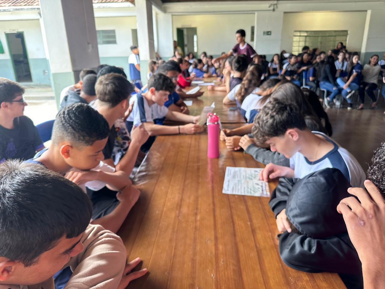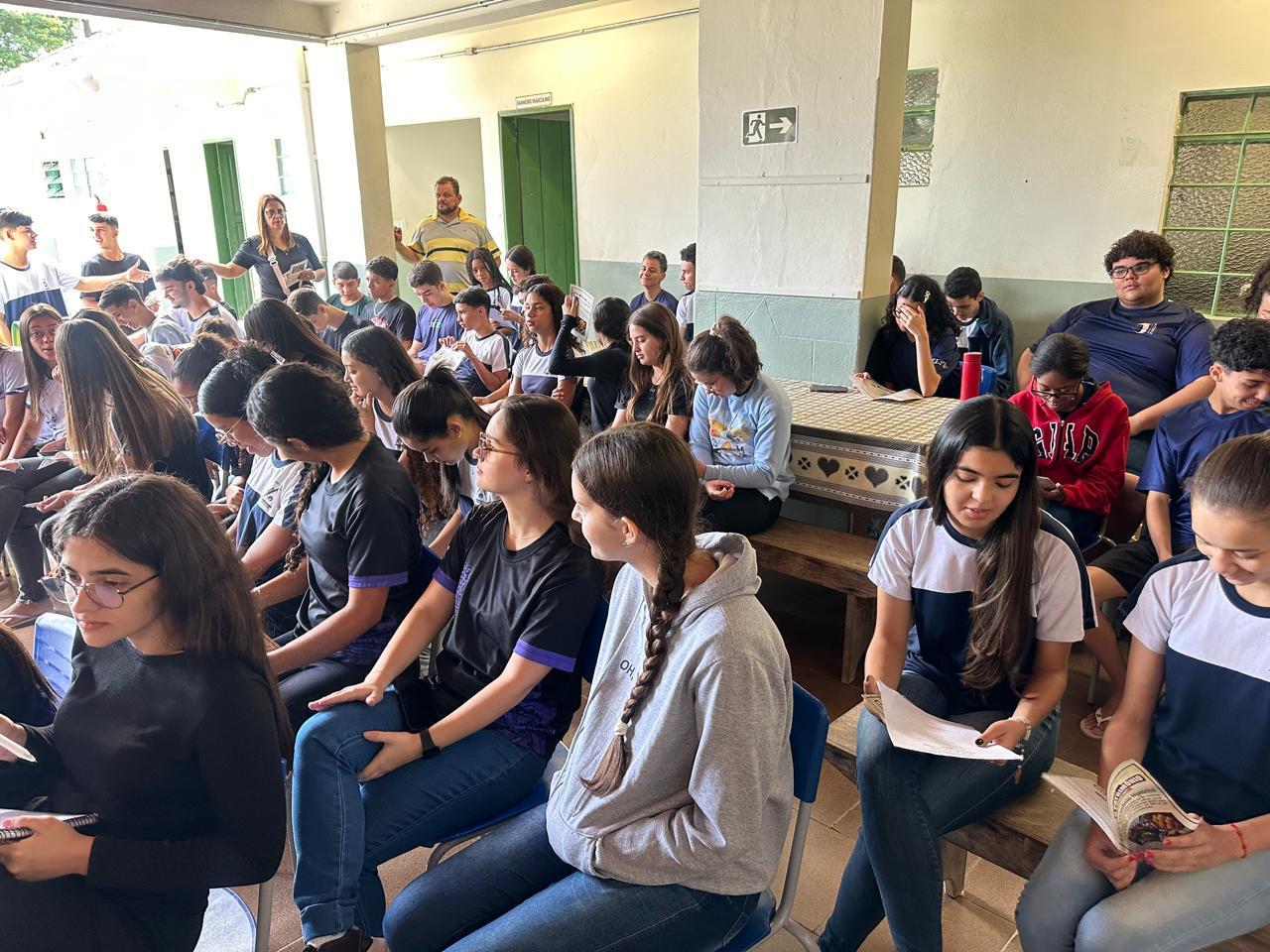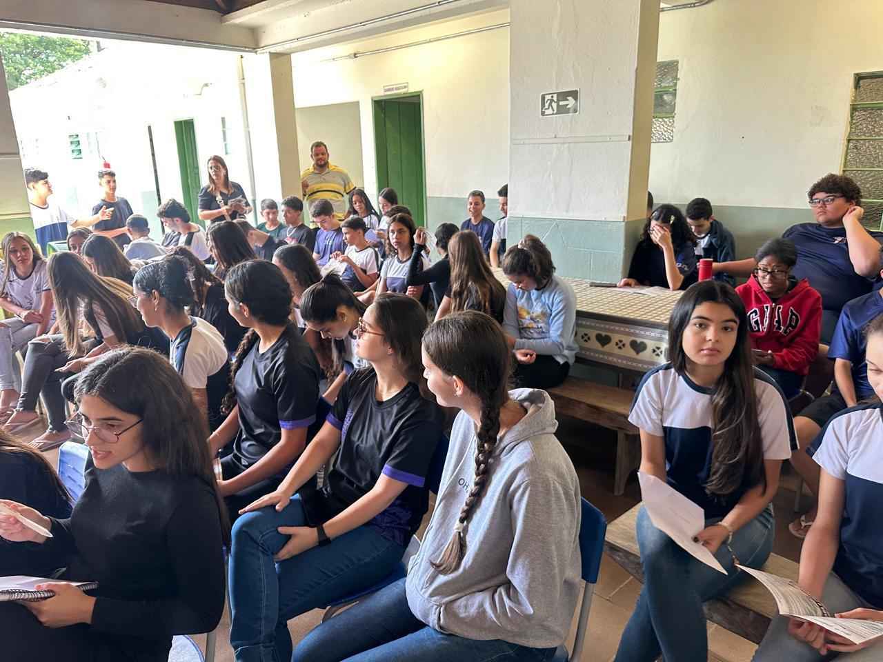 Alunos do Ensino Médio da Escola Estadual Padre José Sangali participaram de uma atividade sobre Educação Patrimonial no dia 18 de novembro. A ação foi conduzida em parceria com a secretaria municipal de Cultura, Esporte, Lazer e Turismo.