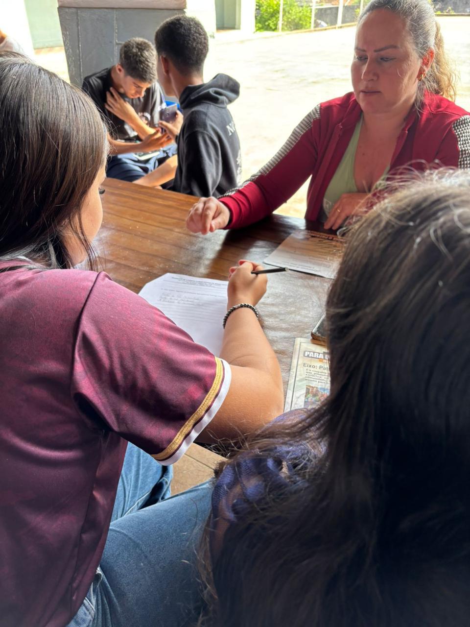 Para encerrar, a servidora Sabrina Brito Silva conduziu uma roda de conversa com os estudantes, sobre o que consideram importante na cidade, o que faz parte da sua história e quais tradições representam o município. Os alunos produziram um documento escrito com suas percepções.