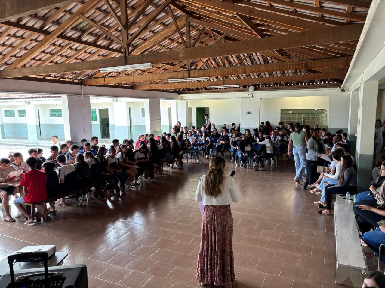 A coordenadora de Cultura, Esporte, Lazer e Turismo Franciane Roberta da Silva falou aos estudantes sobre o patrimônio histórico do município. Ela destacou a importância do conhecimento dos estudantes sobre os bens históricos, culturais, materiais e imateriais de Córrego Fundo.