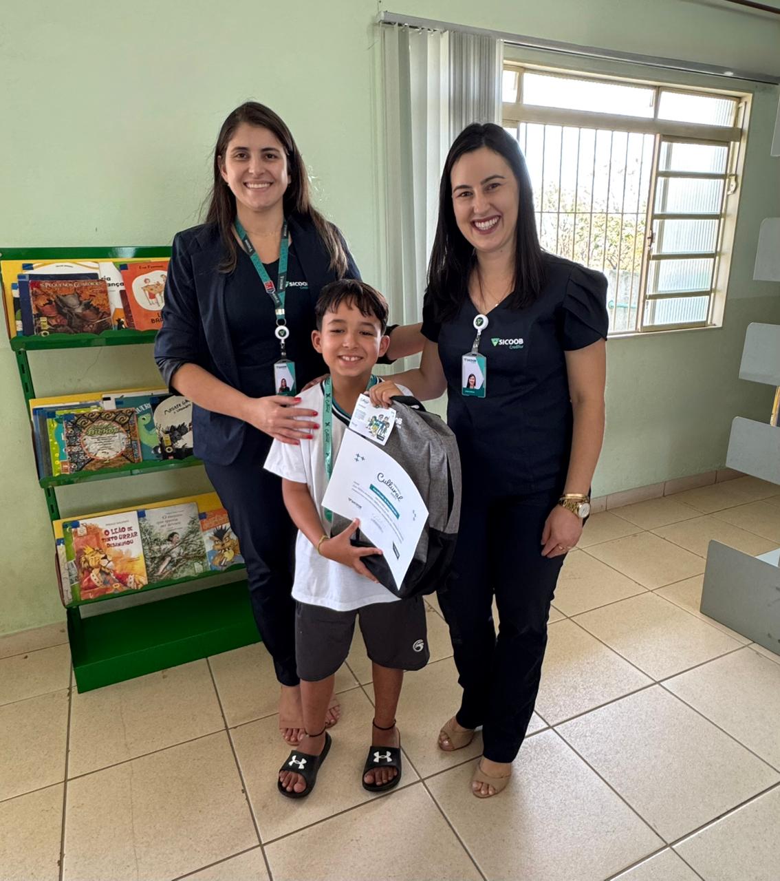 A diretora da unidade escolar, Quese Costa Silva Silveira, a professora Poliana Helena da Silva e a pedagoga Larissa Caroline de Oliveira acompanharam o aluno durante a entrega do prêmio. Esta ação é resultado da 14ª edição do programa, que desta vez teve como tema “Diversidade que soma, cooperação que multiplica”. O foco da próxima edição será a promoção da inclusão e a superação de desafios por meio da cooperação.