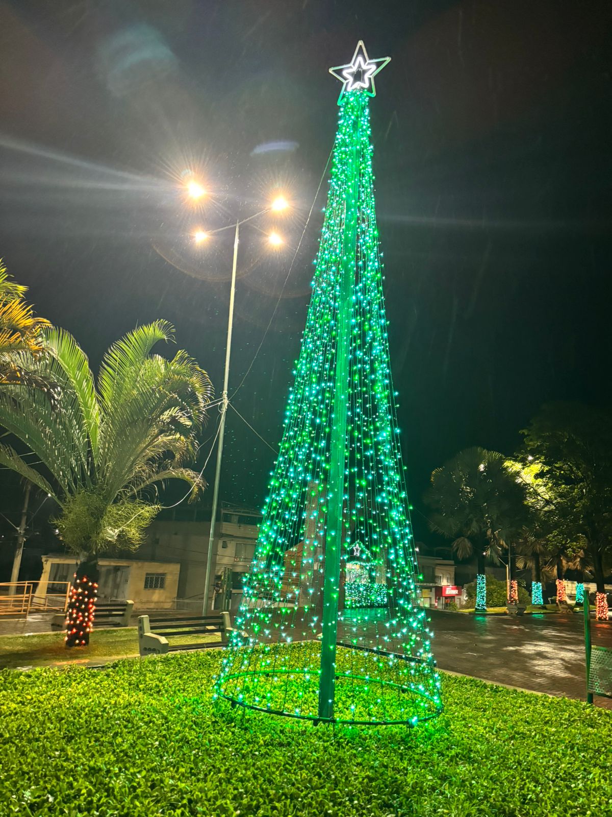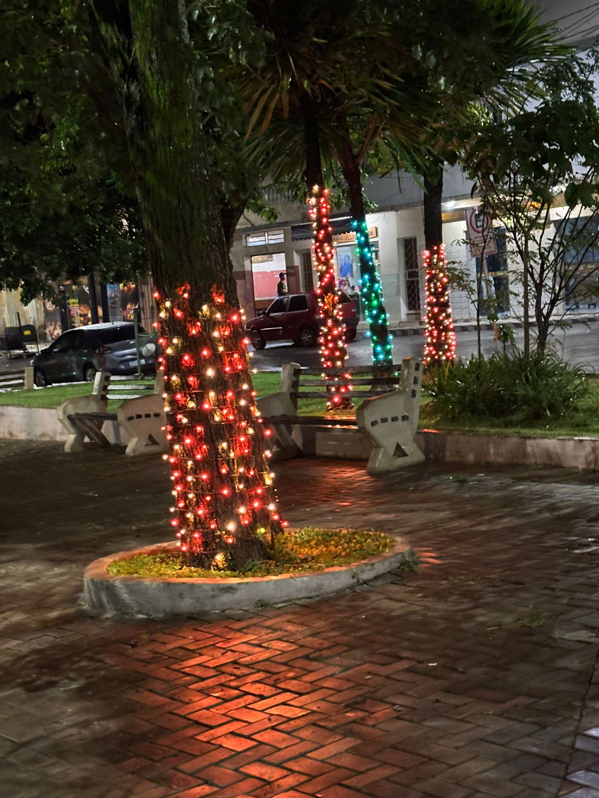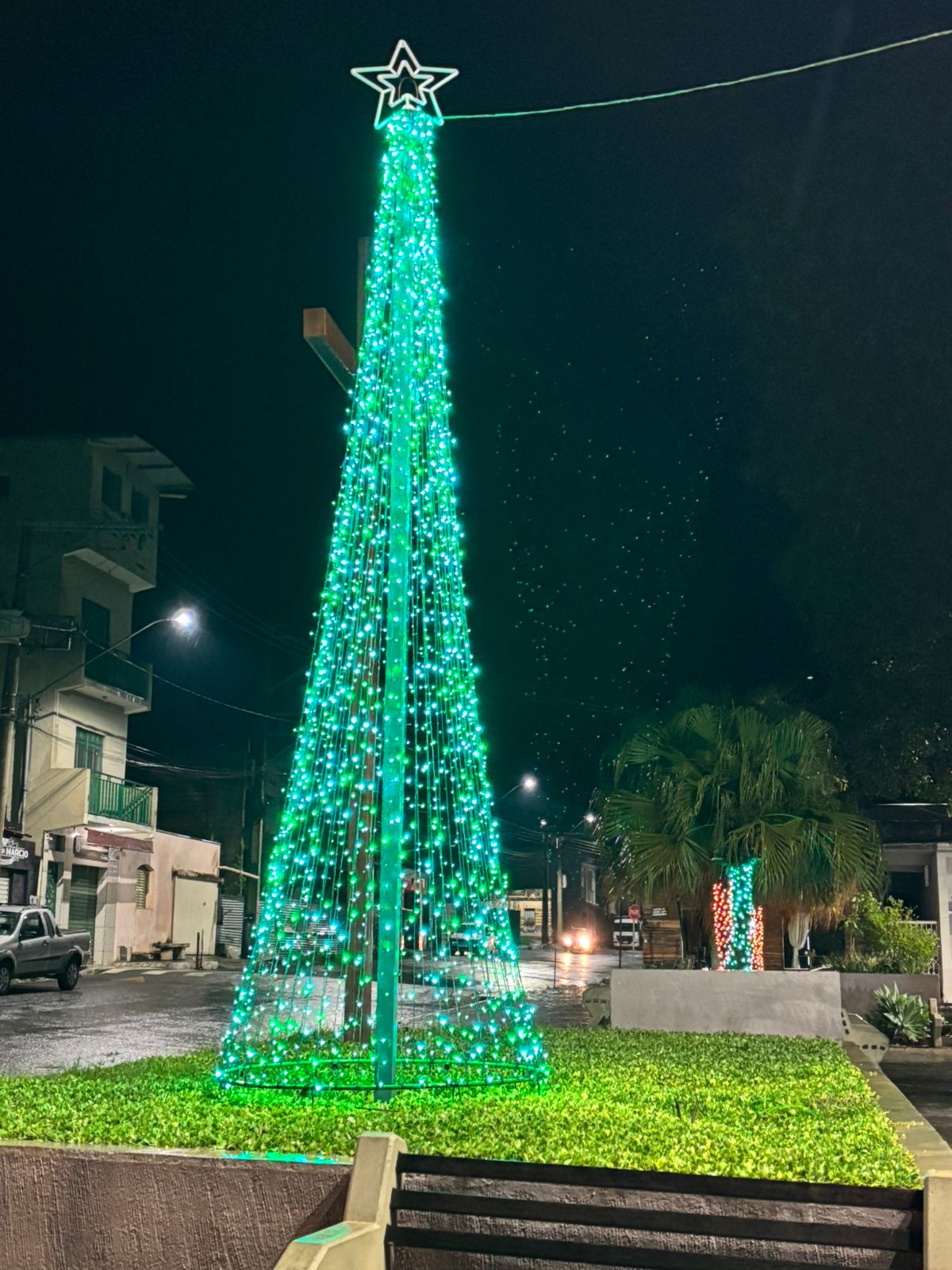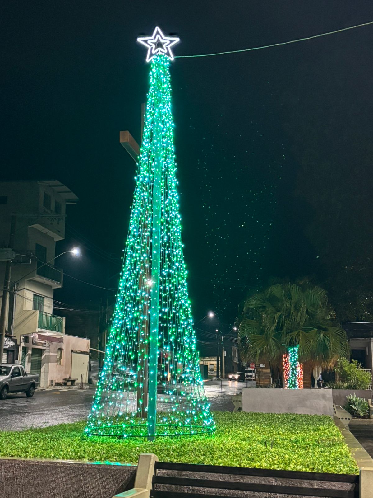 A tradicional iluminação natalina da Praça Vigário João Ivo foi ativada na noite de sexta-feira, dia 5 de dezembro. O acionamento ocorreu pontualmente às 20h15, marcando o início oficial das comemorações de fim de ano na cidade.
