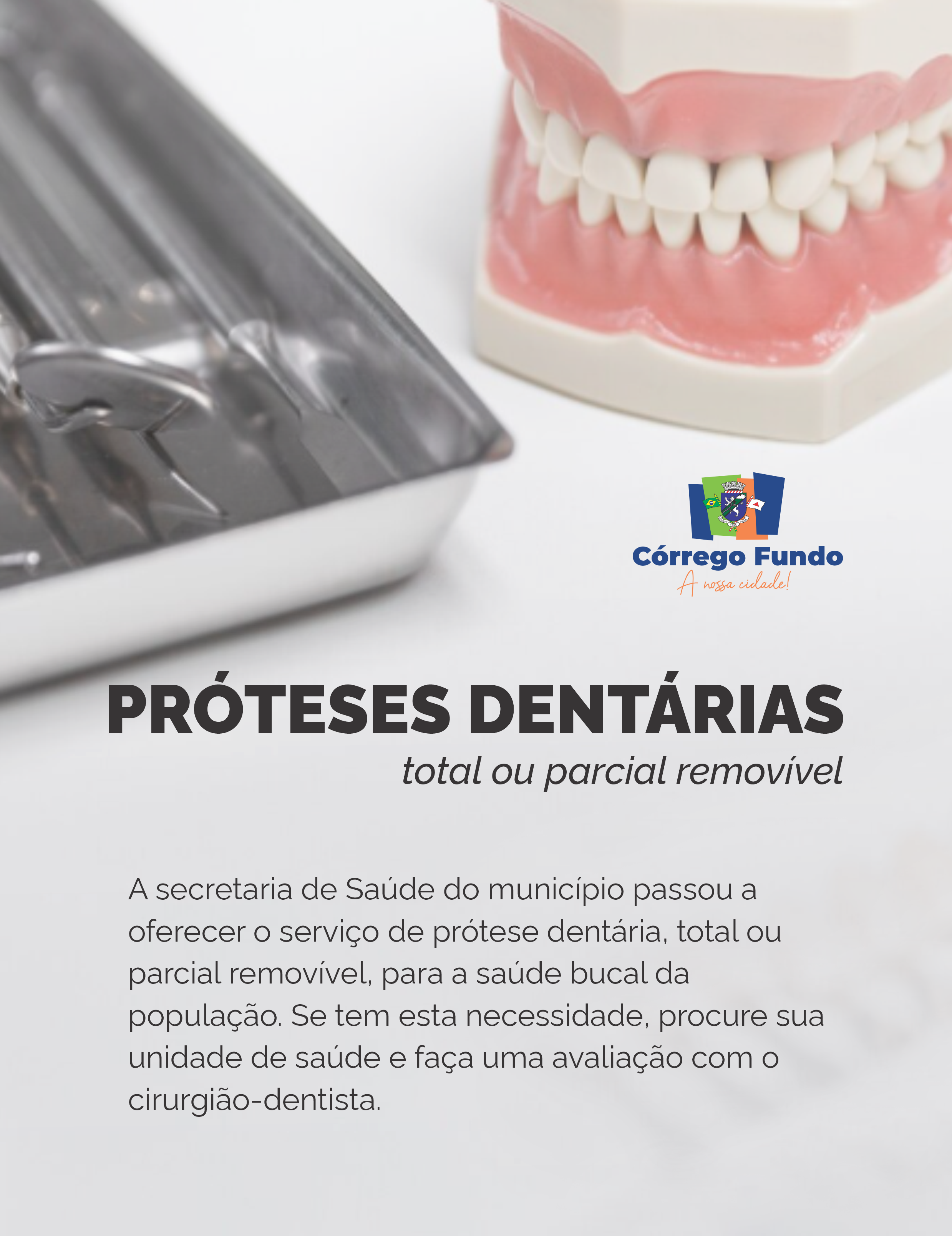 A Secretaria de Saúde do município passou a oferecer o serviço de prótese dentária, total ou parcial removível, à população. Os pacientes que necessitam do tratamento devem procurar sua unidade de saúde para avaliação com um cirurgião-dentista.