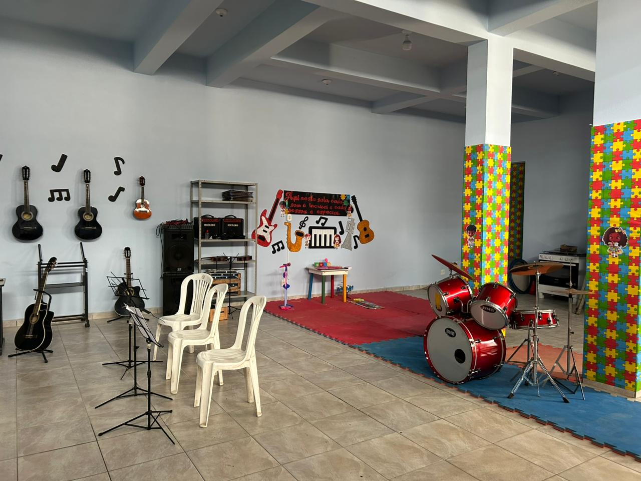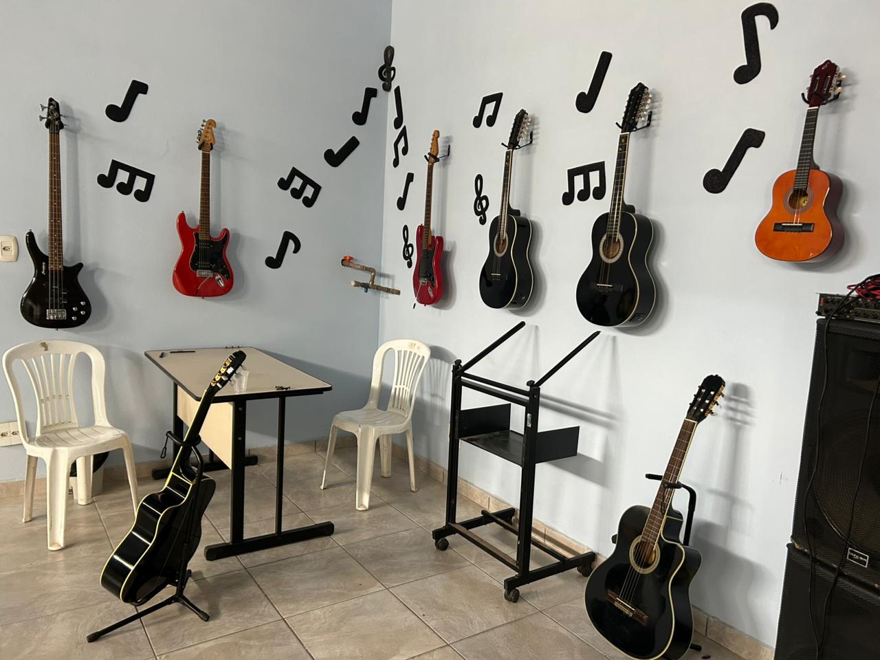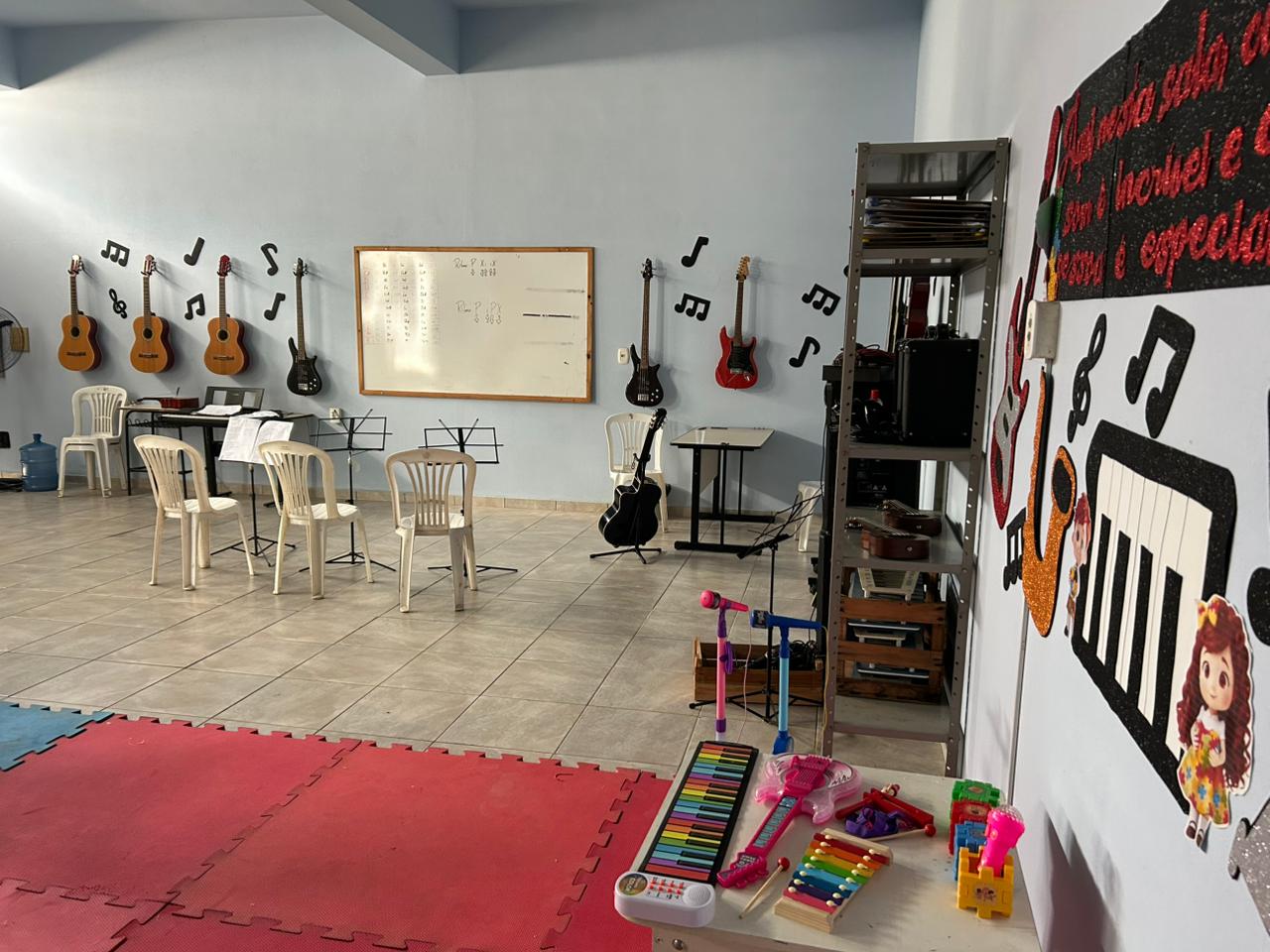 A secretaria de Políticas Sociais disponibiliza, a partir de 2026, uma nova sala para as aulas de musicalização, ministradas pelos professores Leonardo Expedito de Paula e Raul Charles Rodrigues Rosa.