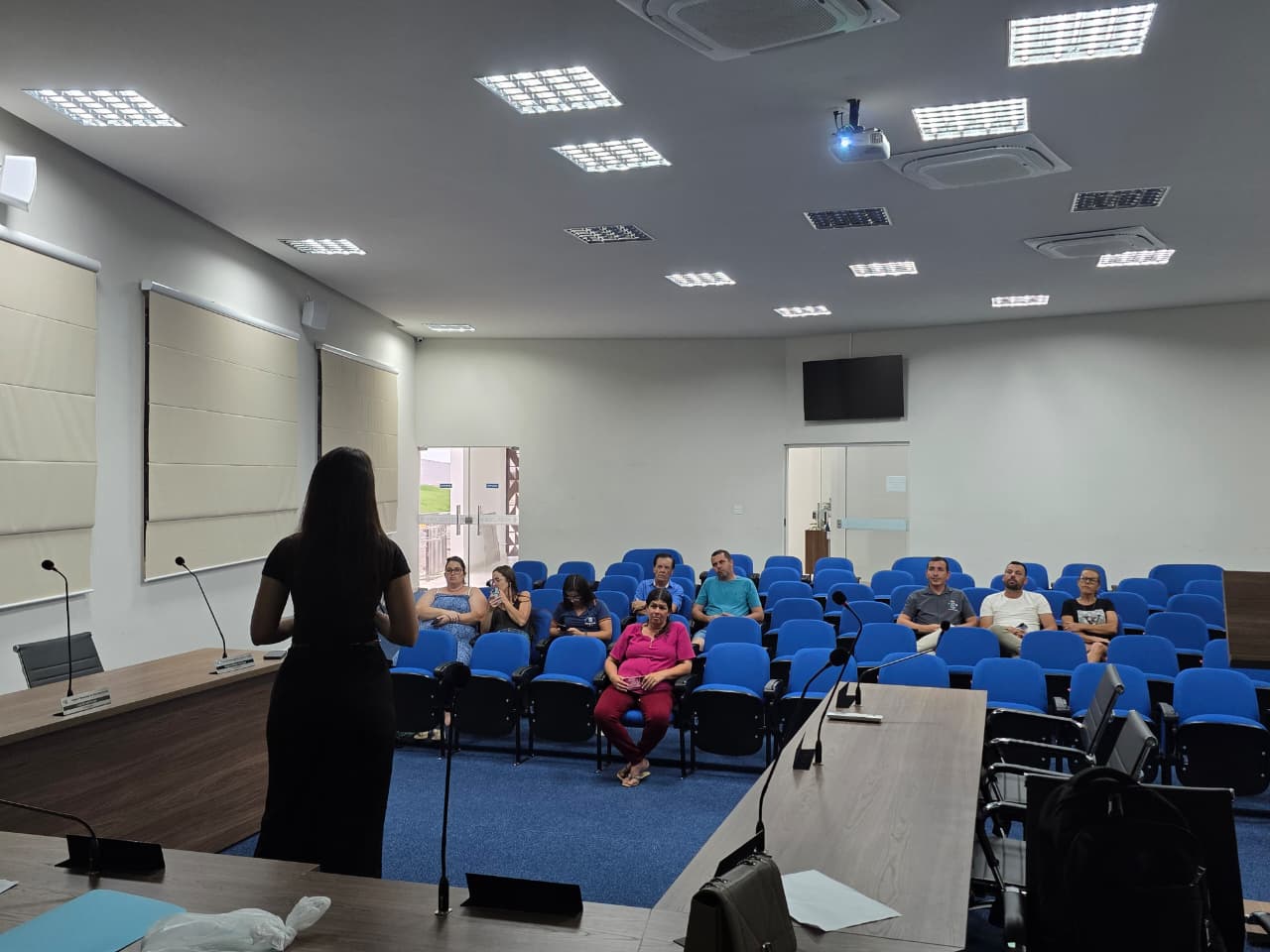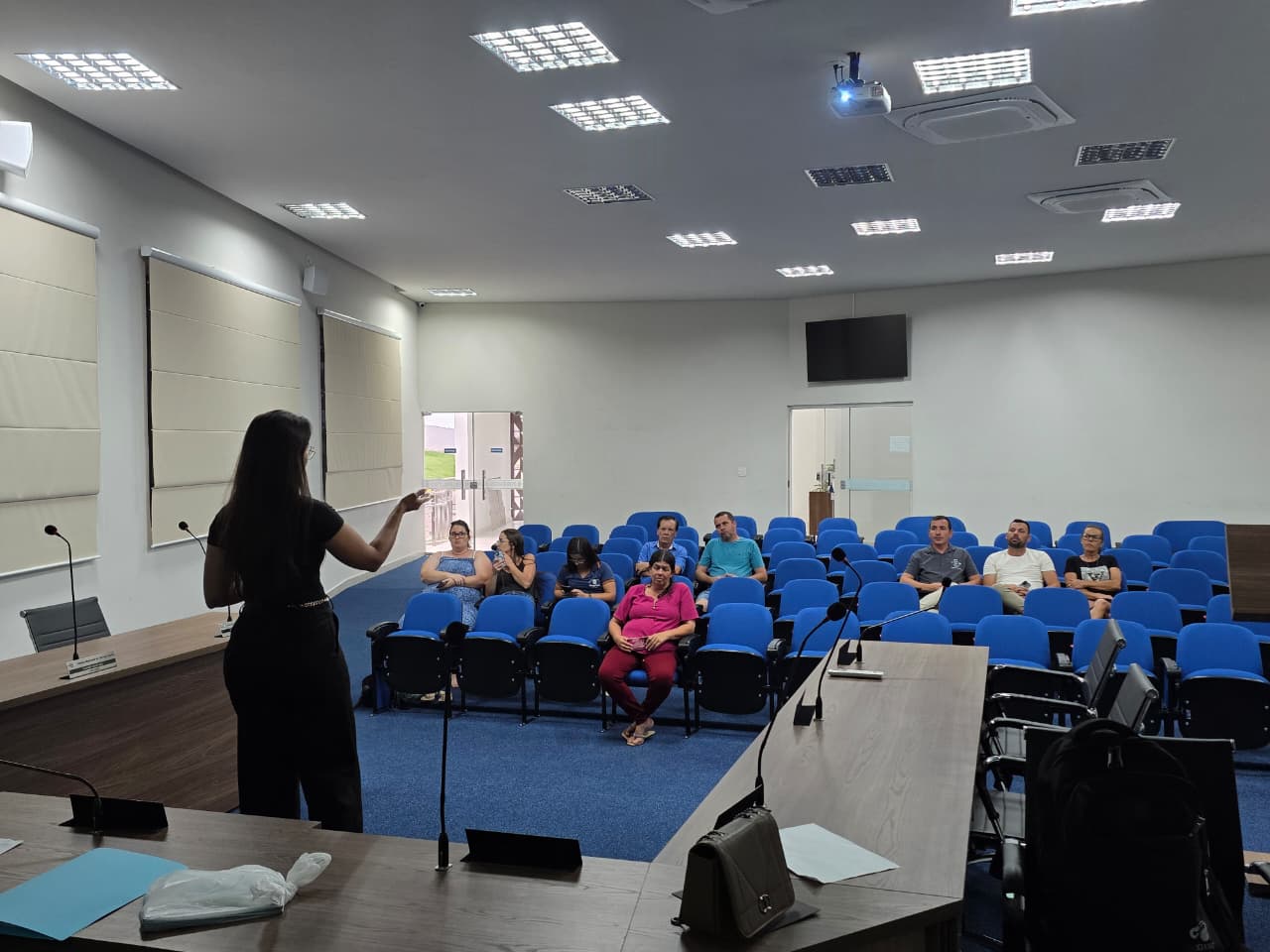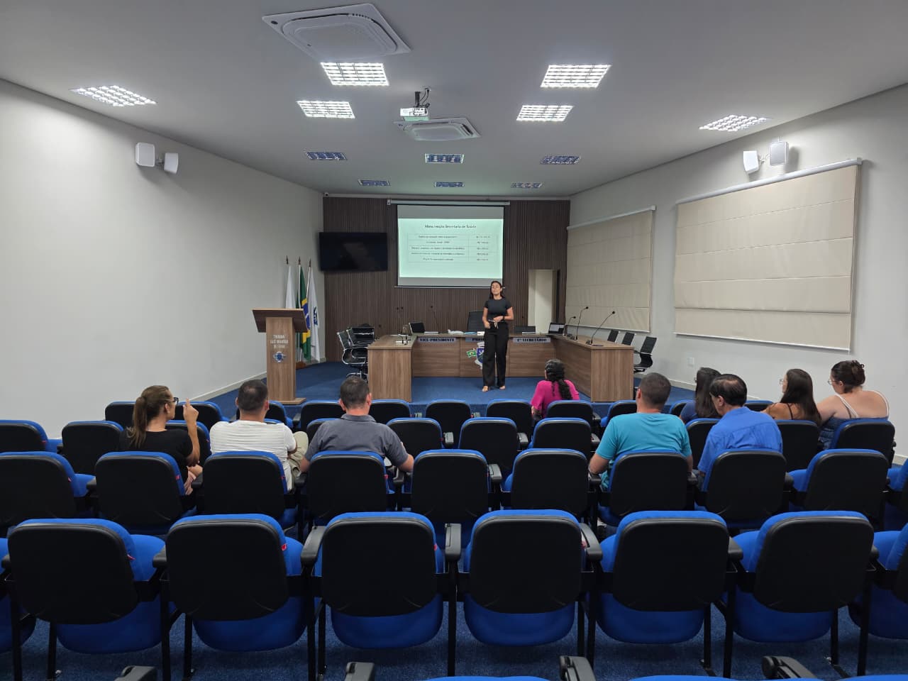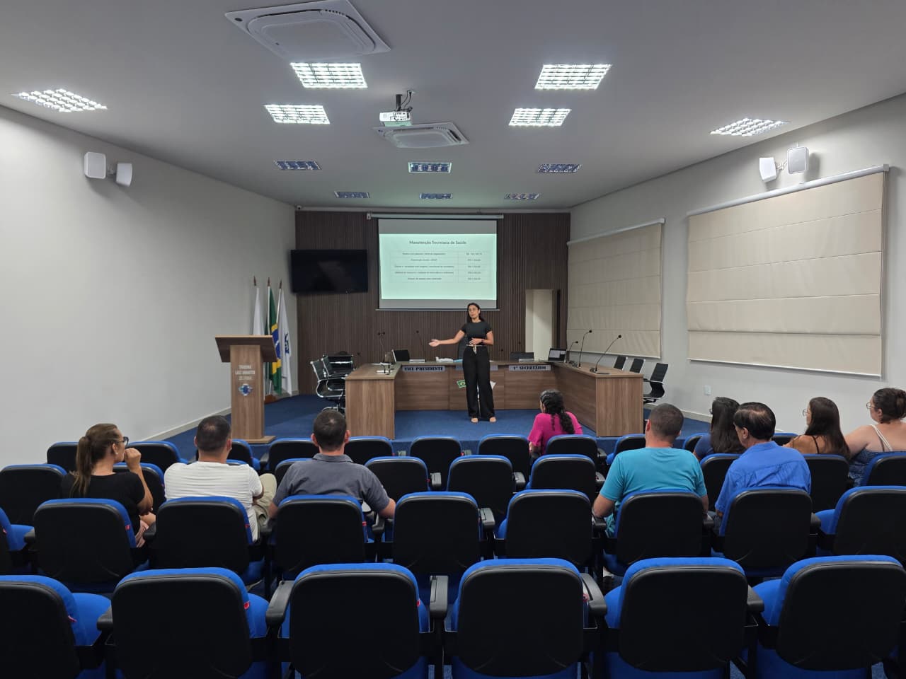 A secretária municipal de Saúde, Alessandra Lopes de Faria, conduziu a exposição dos dados. Foram apresentadas informações sobre os investimentos realizados no período, a execução orçamentária da pasta e as principais ações desenvolvidas entre setembro e dezembro de 2025.